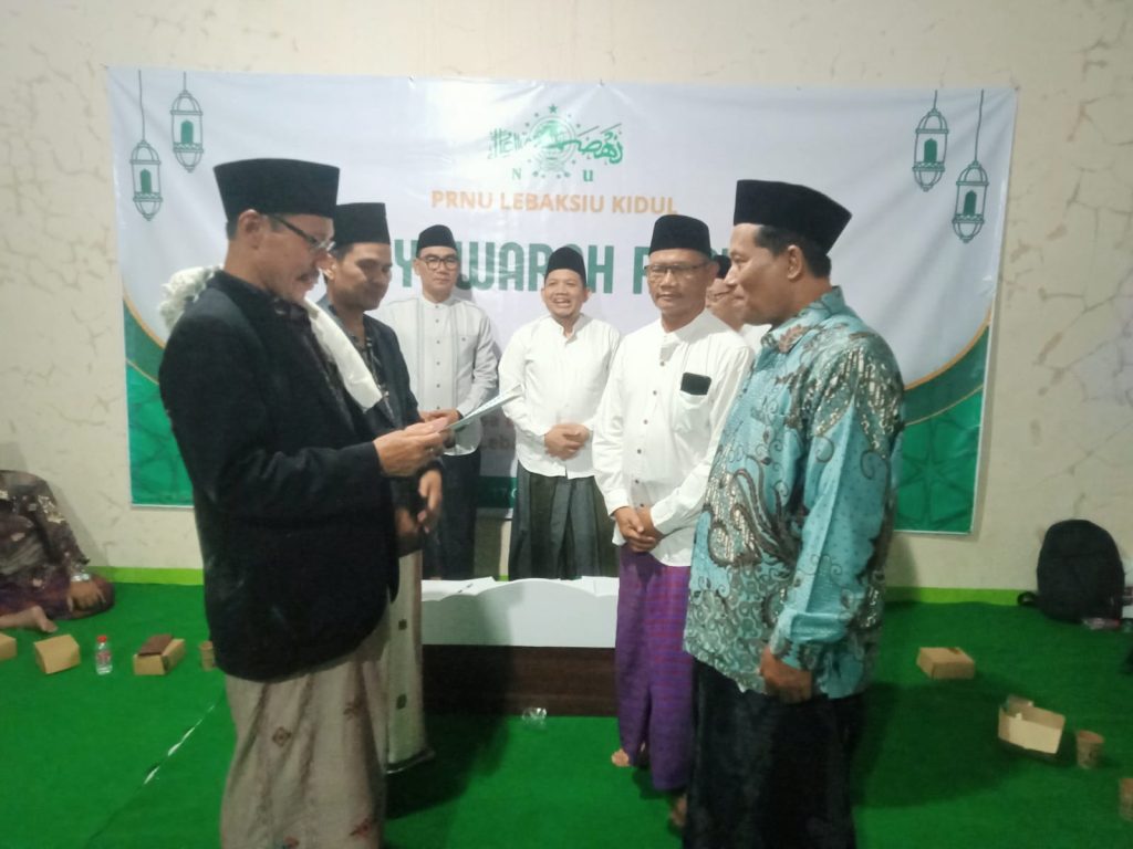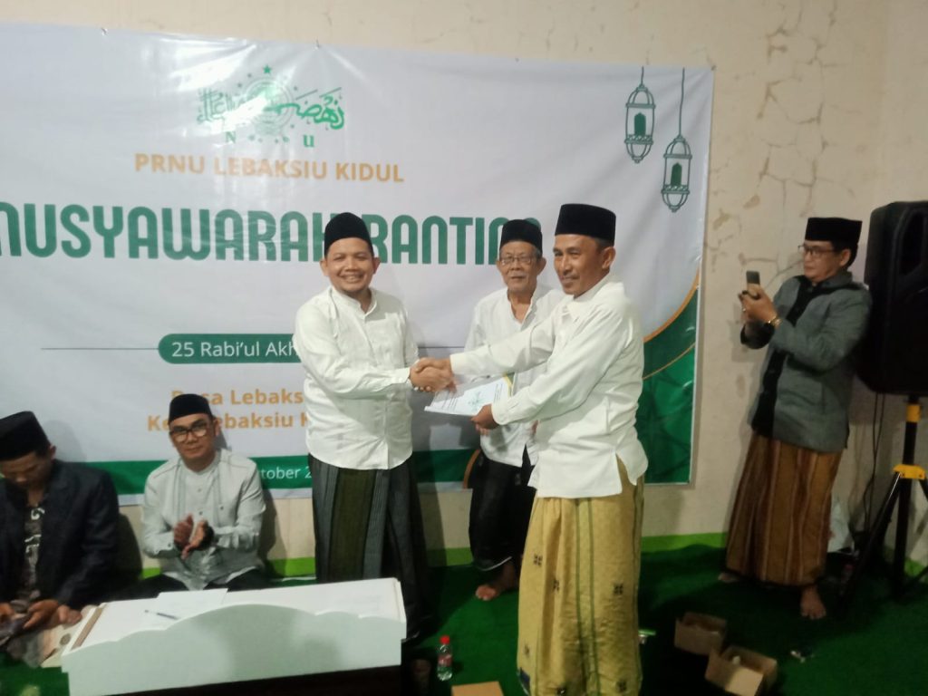 Lebaksiu Kidul – NU Lebaksiu Online- Musyawarah Ranting Nahdlatul Ulama (Musran NU) Desa Lebaksiu Kidul, Kecamatan Lebaksiu, berlangsung khidmat dan penuh suasana kekeluargaan yang diselenggarakan pada tanggal 17 Oktober 2025 di TPQ MNU komplek Masjid Jami Lebaksiu Kidul. Dalam forum tersebut, terpilih KH. Abdurohman sebagai Rois Syuriah dan H. Ali Imron sebagai Ketua Tanfidziyah PRNU Lebaksiu Kidul masa khidmat 2026–2031.