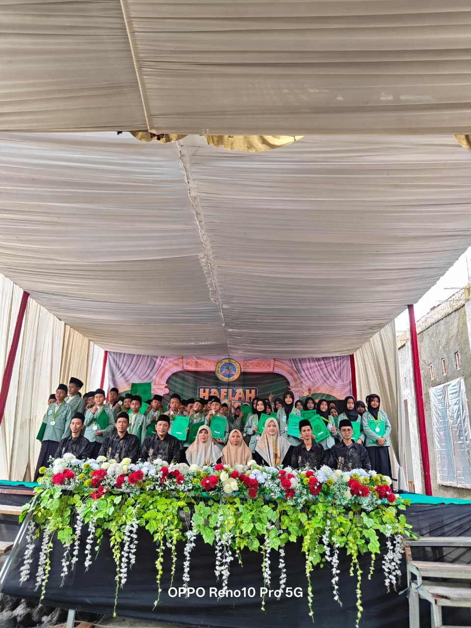 Prosesi wisuda berlangsung dengan penuh haru. Satu per satu santri dipanggil ke atas panggung untuk menerima syahadah sebagai tanda kelulusan. Raut wajah bahagia terpancar dari para wisudawan dan wali santri yang turut menyaksikan momen bersejarah tersebut.