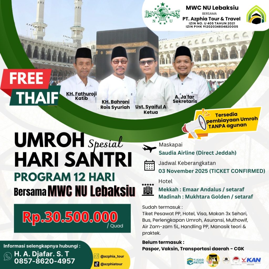 Home Β» Umroh 12 Hari Bersama MWCNU Lebaksiu dalam Rangka Hari Santri Nasional 2025